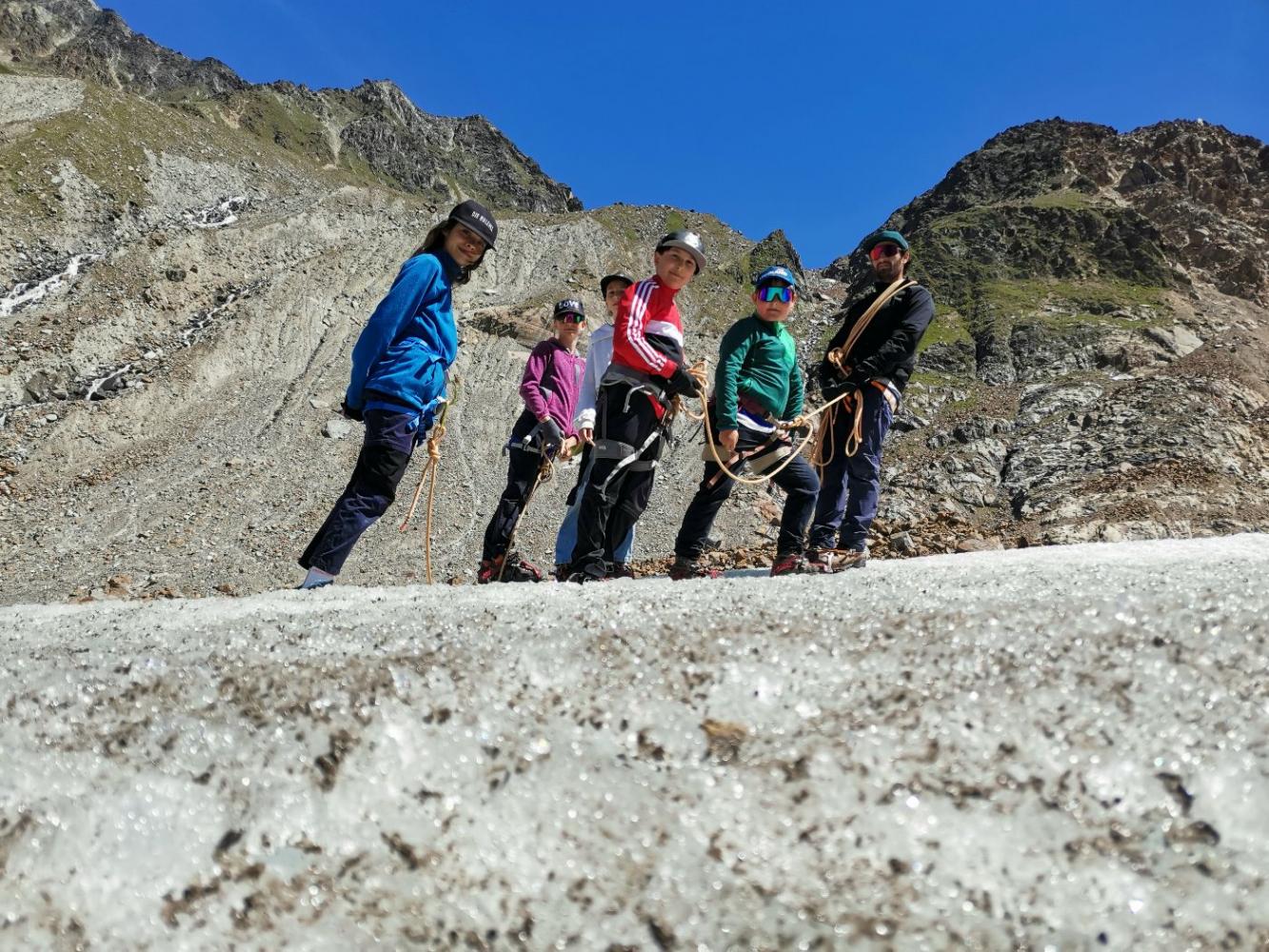 Für jeweils einen Tag durften die ErstklässlerInnen den Kaunertaler Gletscher mit richtigen Profis erkunden. Das beste Wetter wurde abgewartet und es hat sich rentiert.