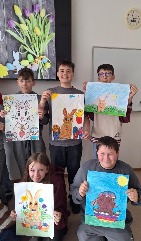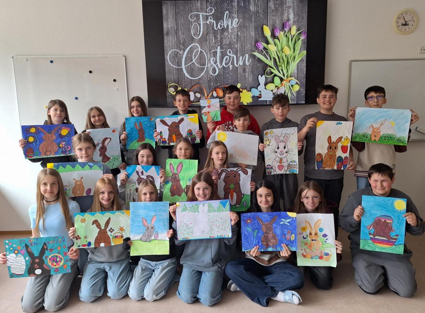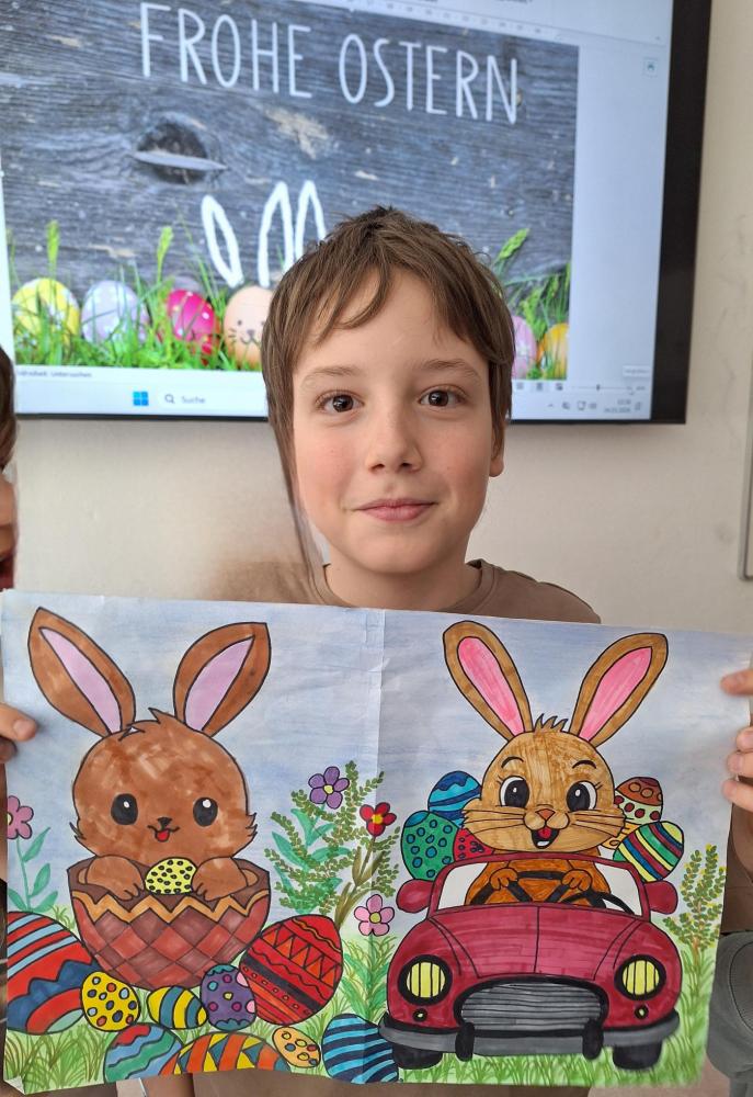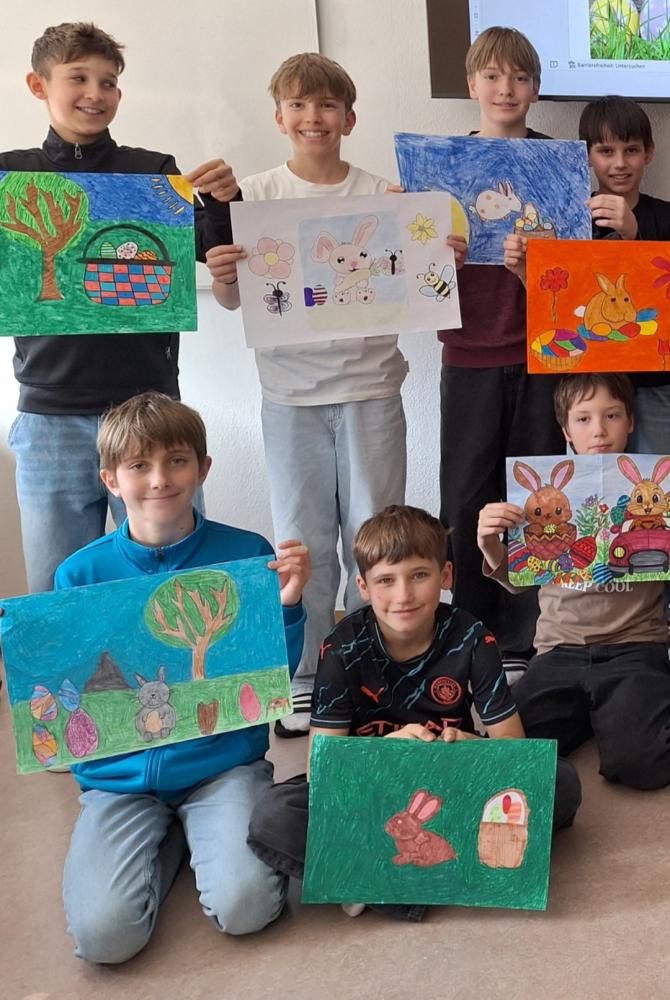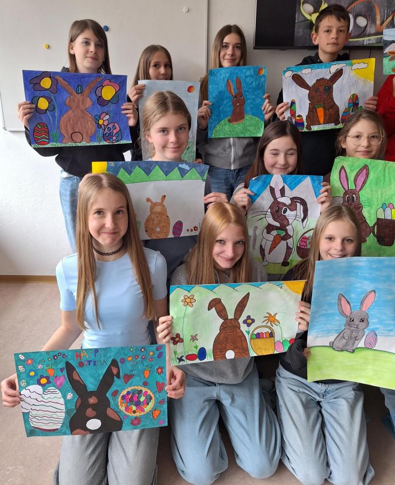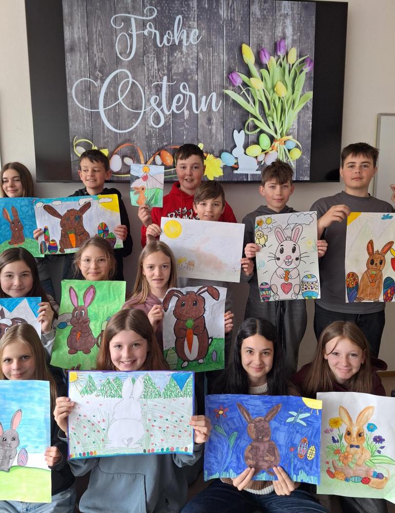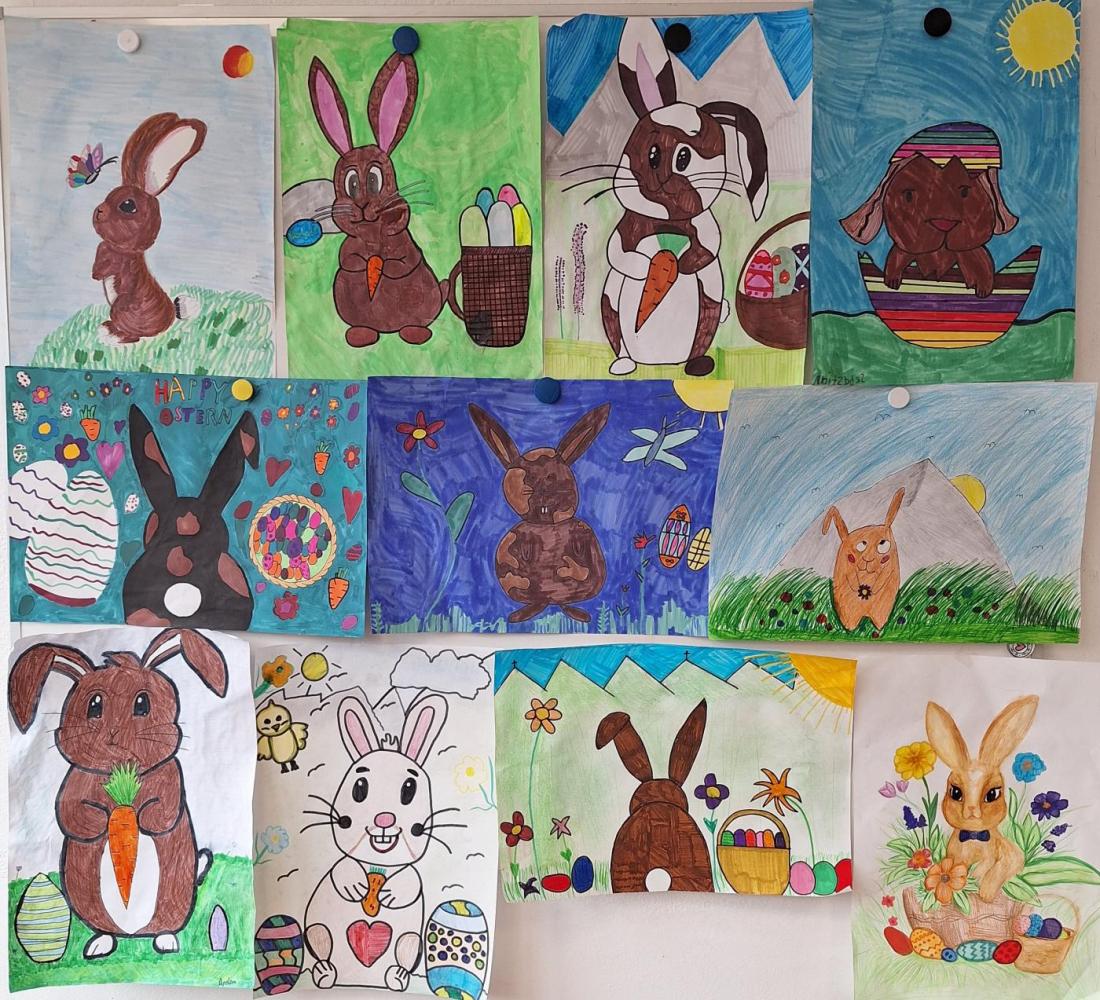 Der Frühling ist da – und mit ihm die Osterzeit! Im KuG-Unterricht haben wir uns in den letzten Wochen kreativ mit dem Thema Ostern beschäftigt. Dabei sind viele bunte Kunstwerke rund um fröhliche Hasen, fantasievoll gestaltete Ostereier und frühlingshafte Motive entstanden.