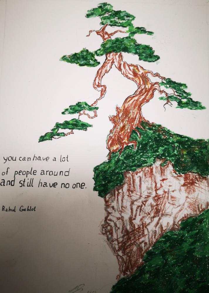 In einem Gespräch mit ihrer Kunstlehrerin Frau Maria Hofer erzählt Kateryna mit einem Lächeln im Gesicht: „Ich habe schon mit 3 Jahren Portraits an die Wand gemalt und meine Oma damit beeindruckt!“. Von da an begeisterte sie ihre Familie bis heute immer wieder mit tollen Kunstwerken.