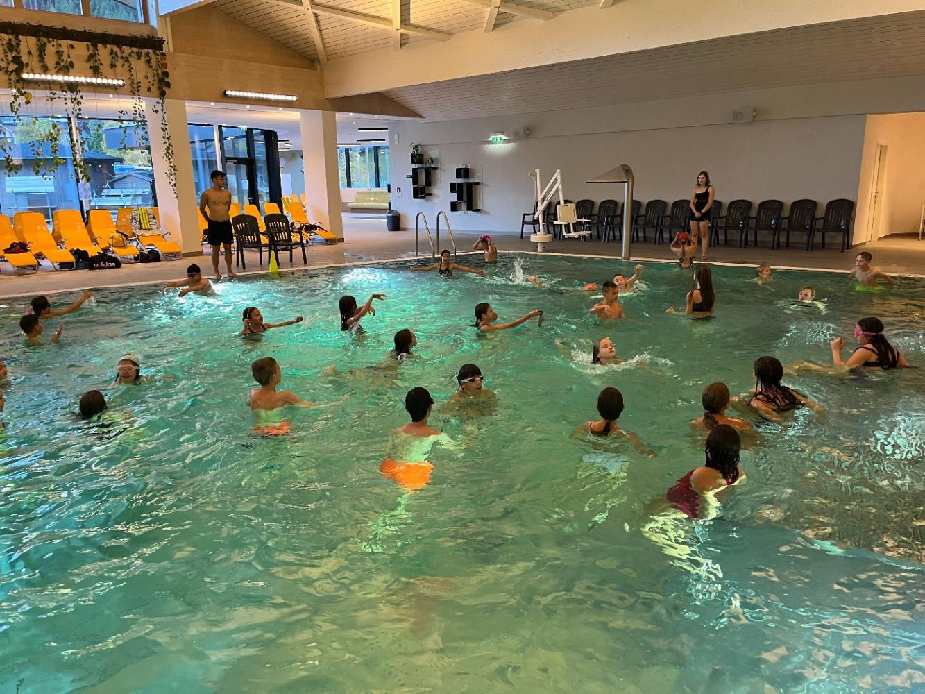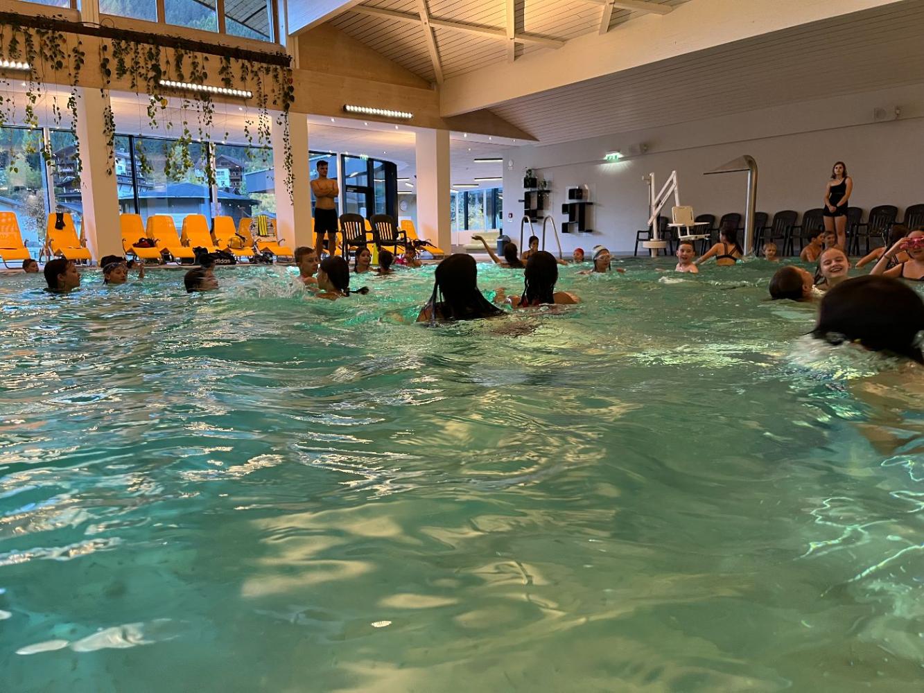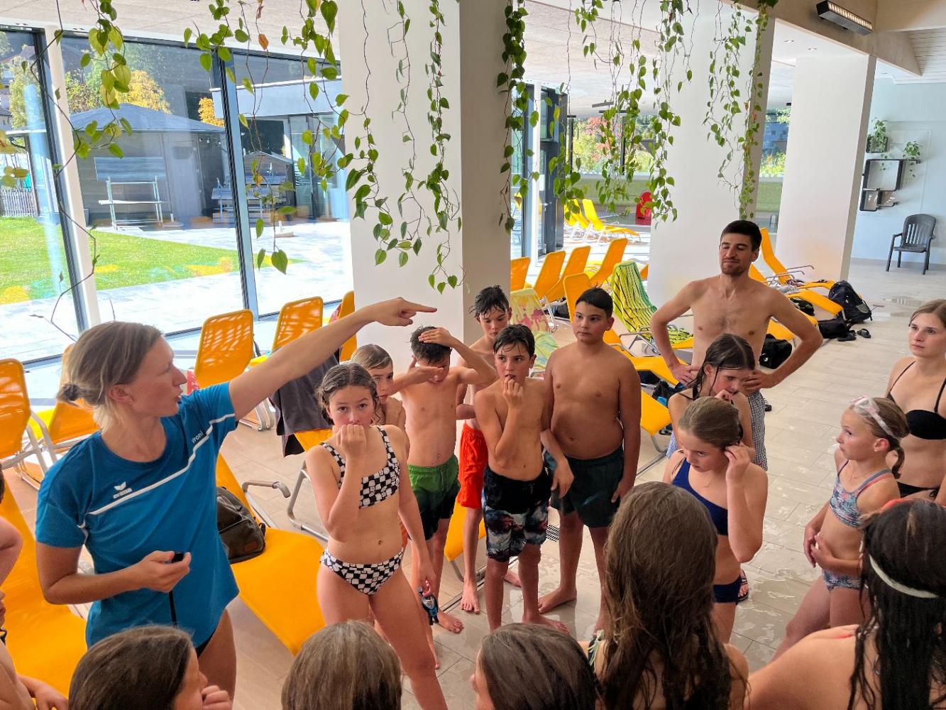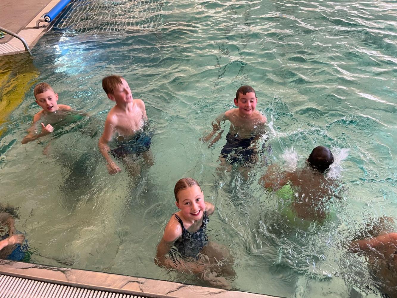 Die 1. Klassen verbrachten eine spannende Schwimmwoche im Schwimmbad Quellalpin Kaunertal. Die Schülerinnen und Schüler verbesserten ihre Schwimmtechniken, übten Tauchen und Rettungsübungen und hatten viel Spaß bei Spielen im Wasser.