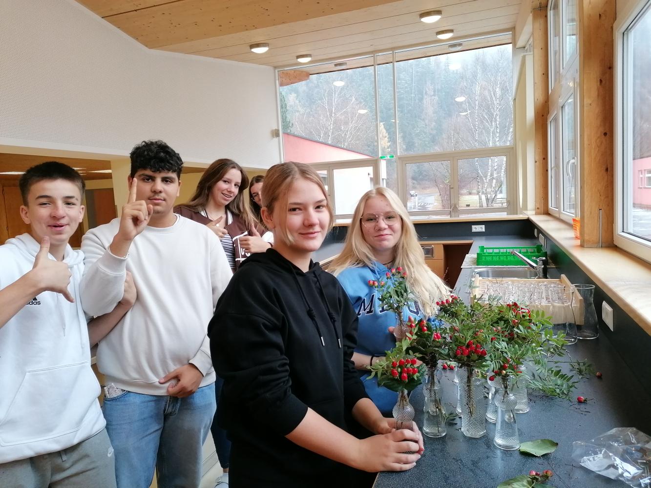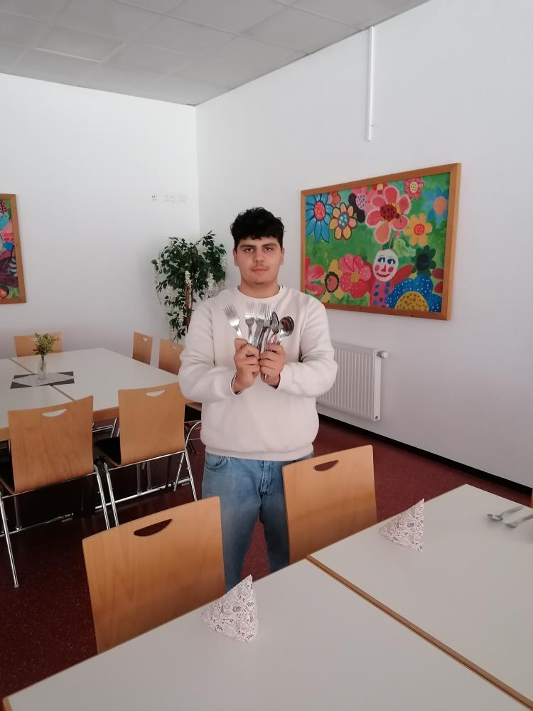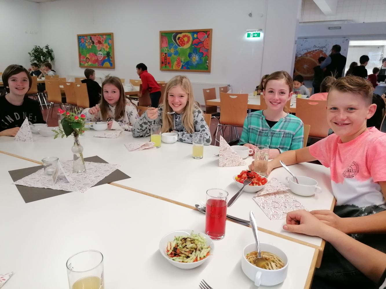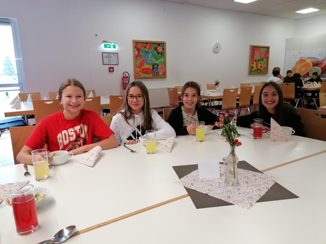 Im Zuge des GU-Unterrichts gestalteten einige Schüler:innen der 4a-Klasse den Speisesaal. In kleinen Gruppen wurden fleißig Servietten gefaltet, eine Tischmitte mit Frischblumen gestaltet sowie Tischkärtchen gebastelt. Zum Schluss wurden alle Tische fachgerecht eingedeckt und die Schüler:innen waren mit dem Ergebnis sehr zufrieden. Auch die Mitschüler:innen und Lehrer:innen, die zu Mittag zum Essen kamen, freuten sich über die schön gedeckten Tische.