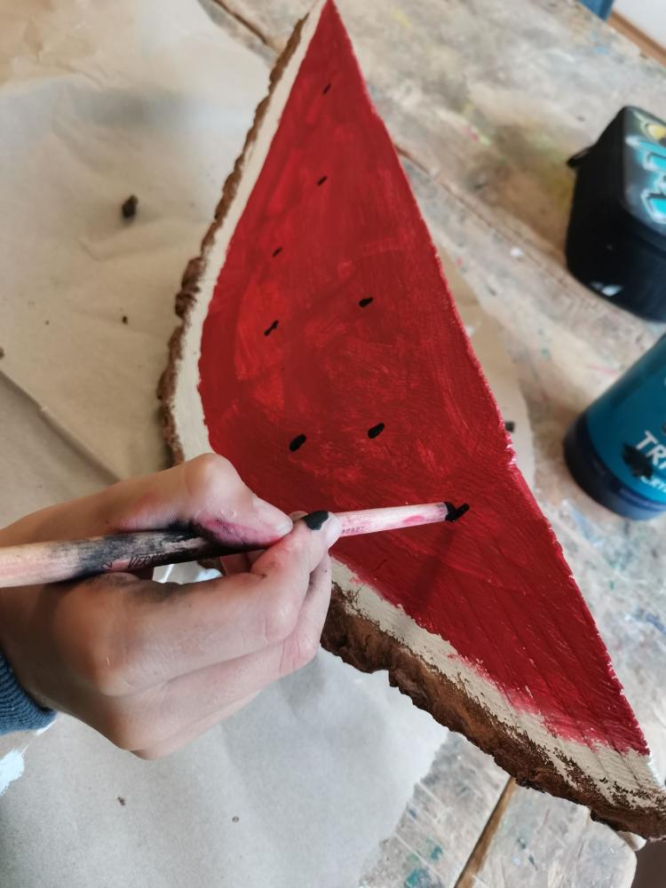 Wassermelonen von Gabriel Althaler 06. Oktober 2025 Schuljahr 2025/26 2a Tec Auch wenn die Zeit für den Genuss von Wassermelonen bereits vorbei ist und die Temperaturen nicht dazu passen, haben wir im TuD- Unterricht ökologisch nachhaltige (aus heimischen Wäldern) und zuckersüße Wassermelonen erschaffen.